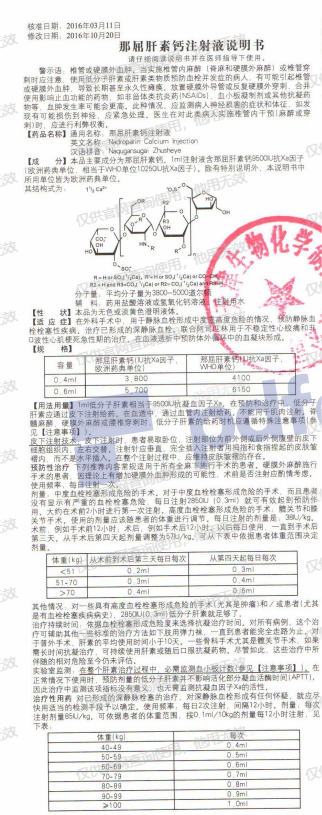 1ml低分子肝素相當于9500lU抗凝血因子Xa。在預防和治療中,低分子肝素應通過皮下注射給藥。